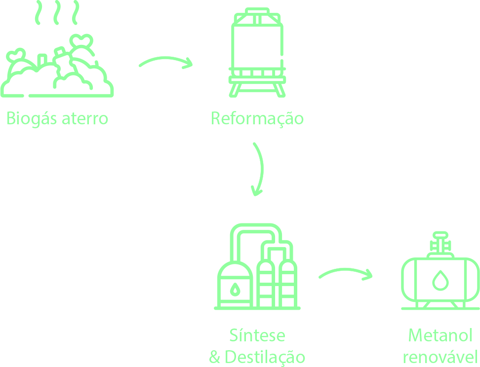 O processo de produção de metanol renovável envolve a utilização de gases renováveis, como biogás de aterro, promovendo uma economia circular e sustentável. O metanol produzido pode ser usado como combustível limpo para indústrias e transportes, contribuindo para a redução das emissões de gases com efeito de estufa.